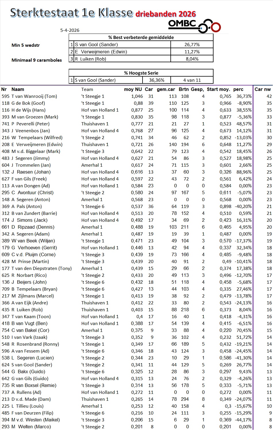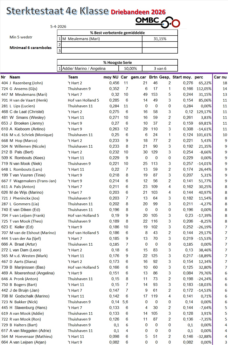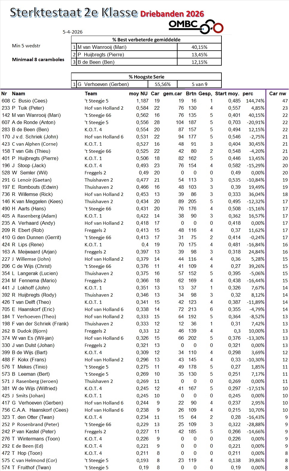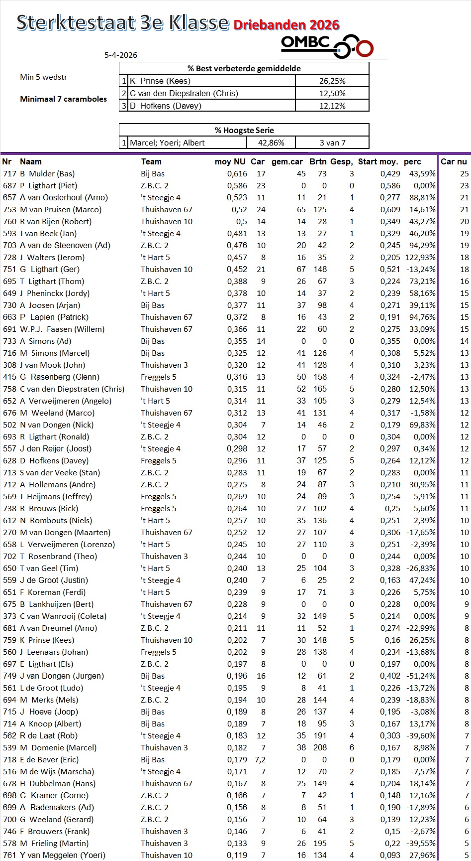 Begin sterktestaten Driebanden 2026